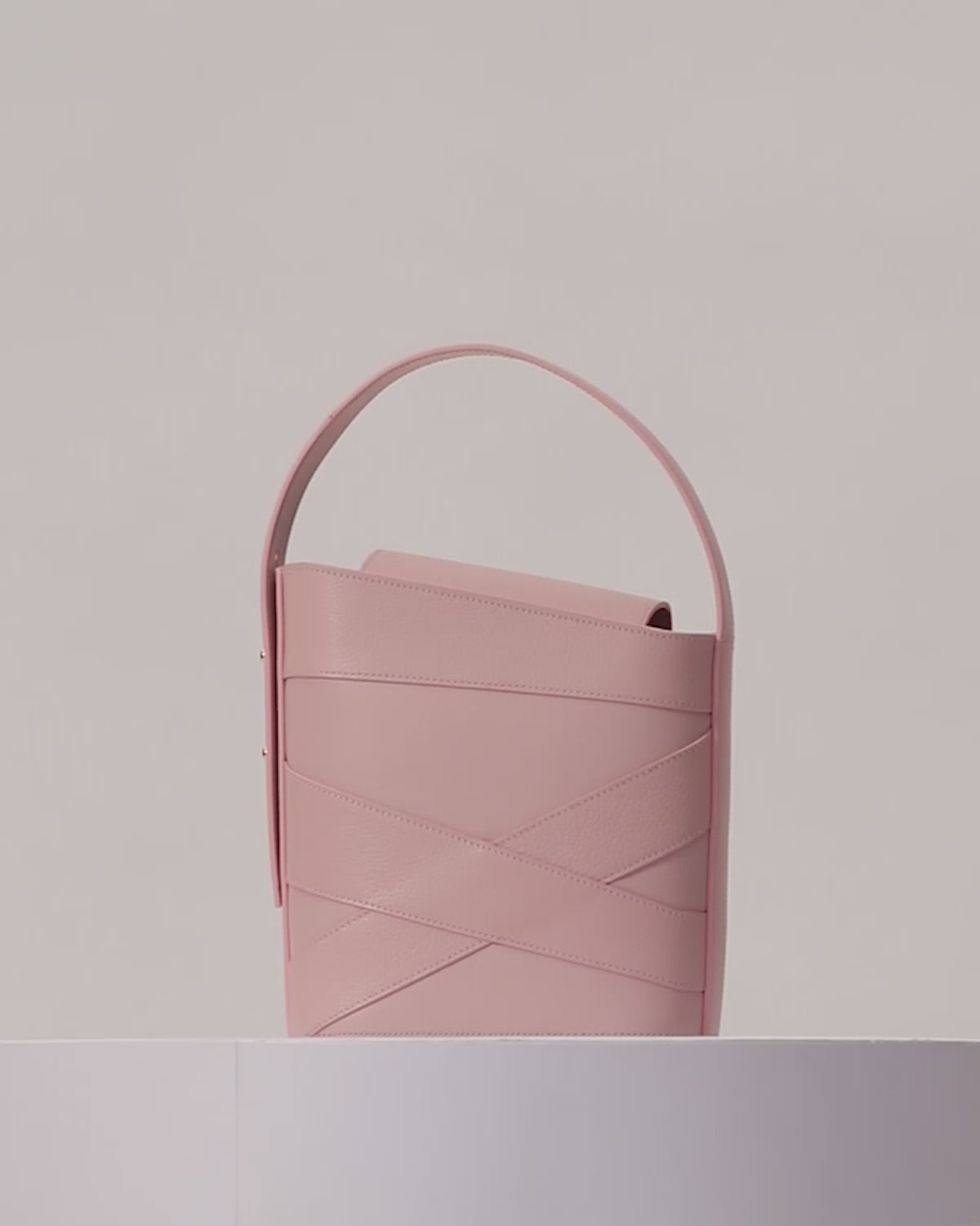 The Violette embodies modern sophistication with its compact, asymmetrical design. Crafted from intertwined grained leather ribbons supported by a smooth leather base, each Italian leather element complements the other, creating a subtle showcase of fine design details and a rich tapestry of texture. It features a flap closure with a magnetic fastening, an adjustable handle, and an additional shoulder strap, offering versatile styling options. Sculptural lines and refined details make it a statement piece, effortlessly elevating any occasion, day or night.